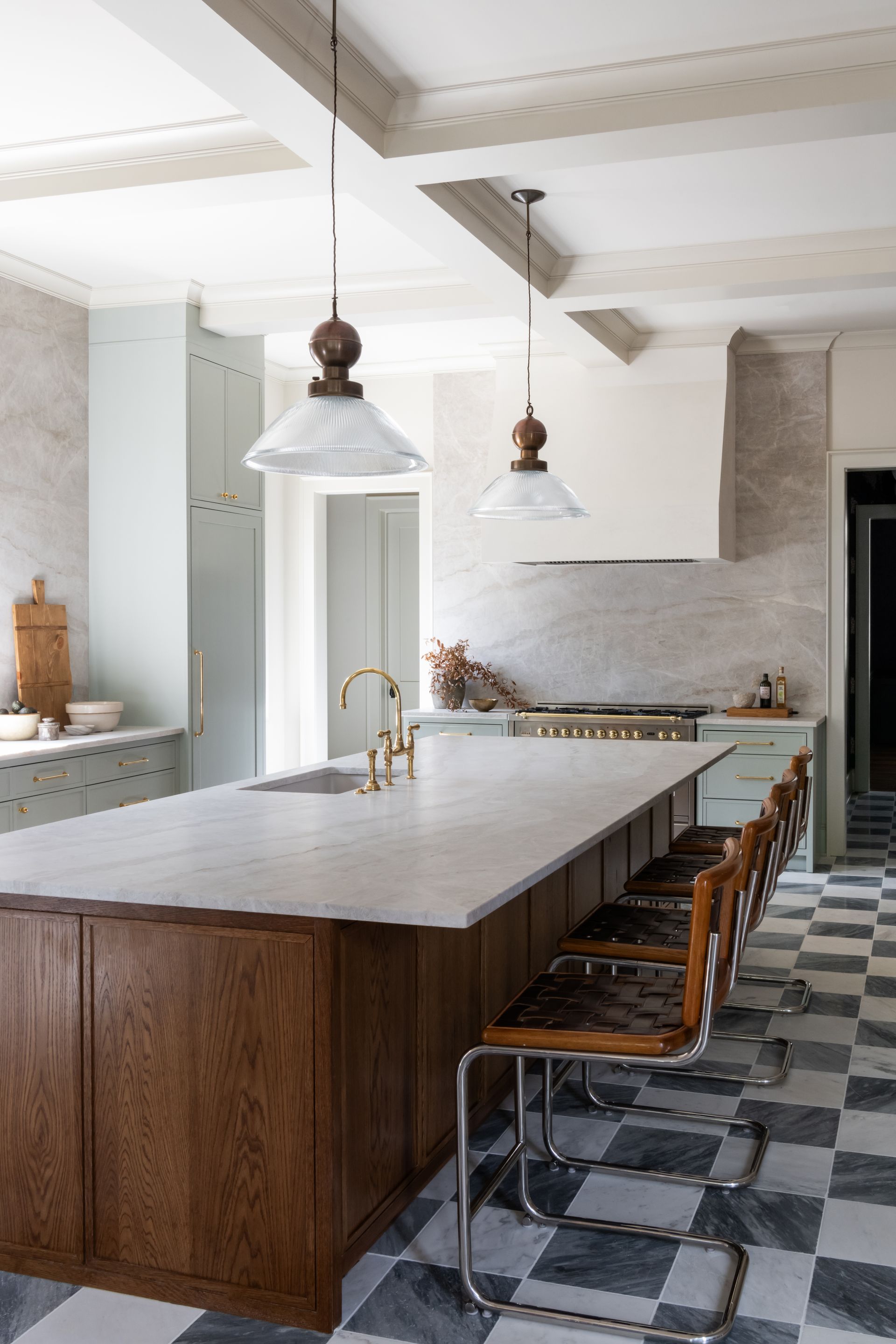 This client requested depth and drama into the heart of the home with bold stone + layered textures. ✨ #interiordesign | #interiordesigner | #nashville | #homedecor | #victoriaforehandesign | #modernkitchen | #moodyhues